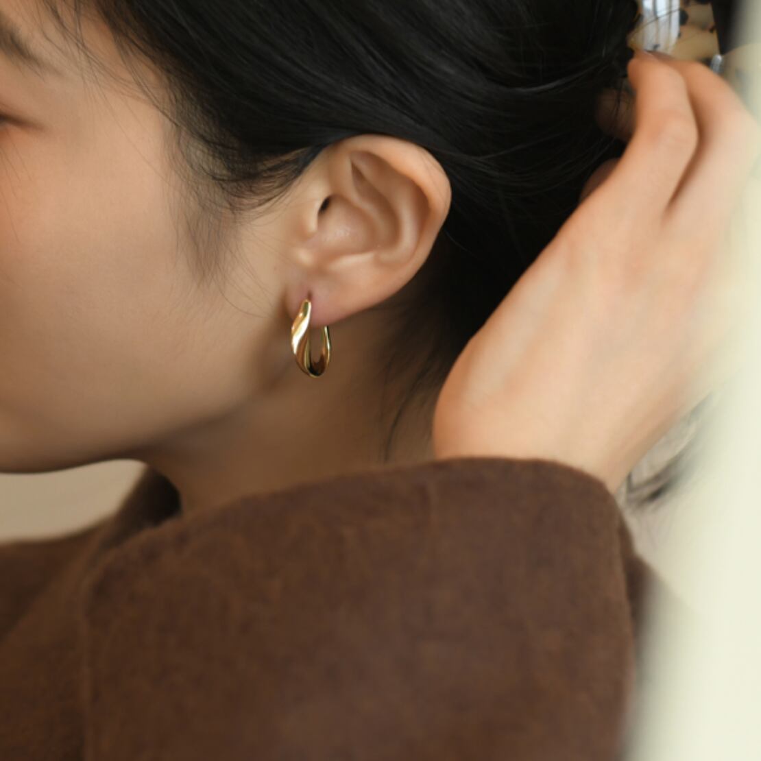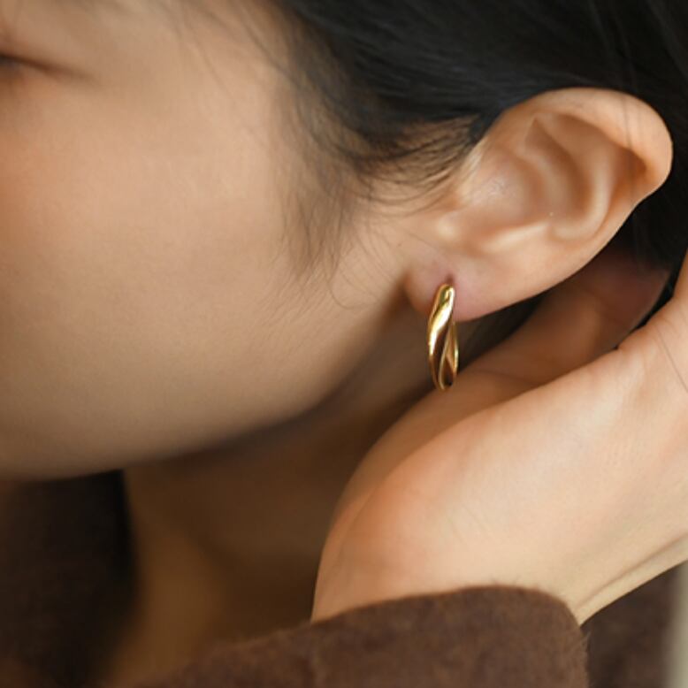 ボリュームのあるツイストデザインが美しいスタッドピアス。
