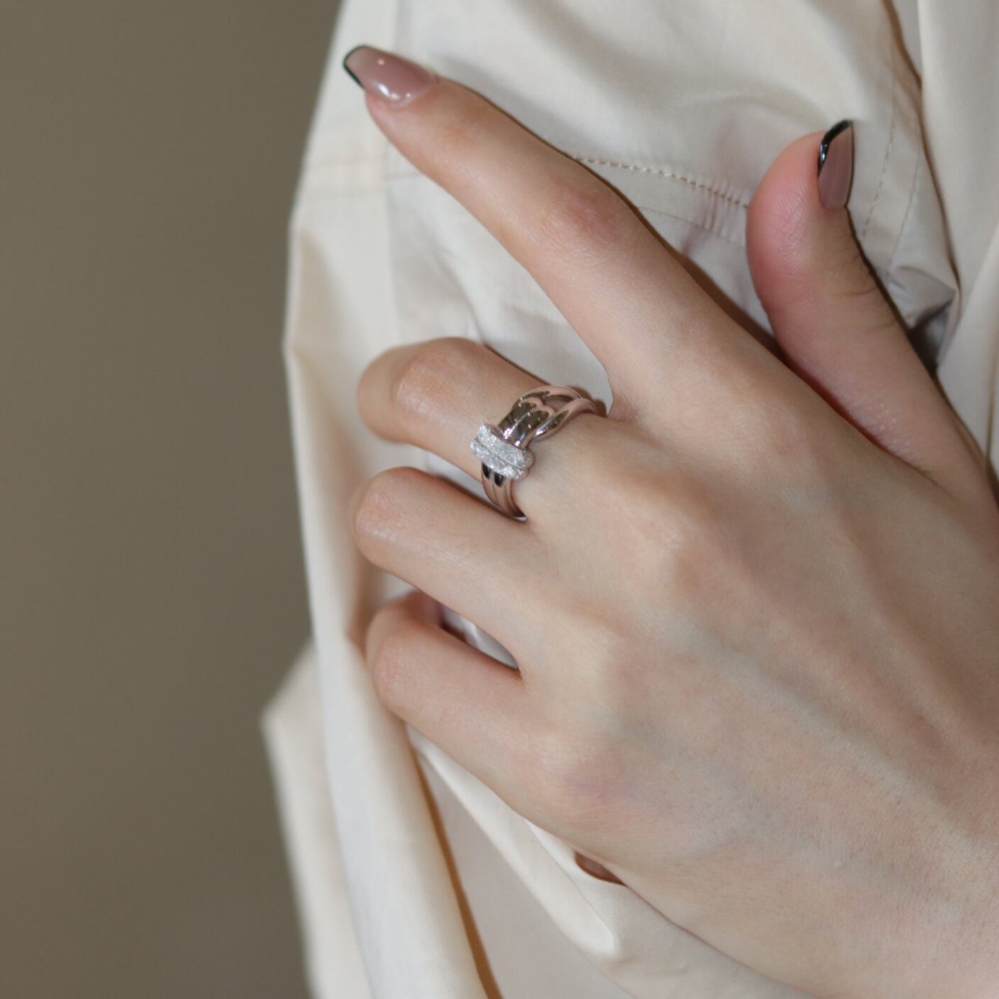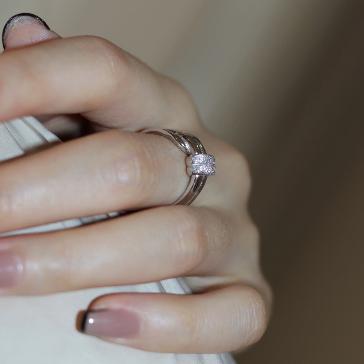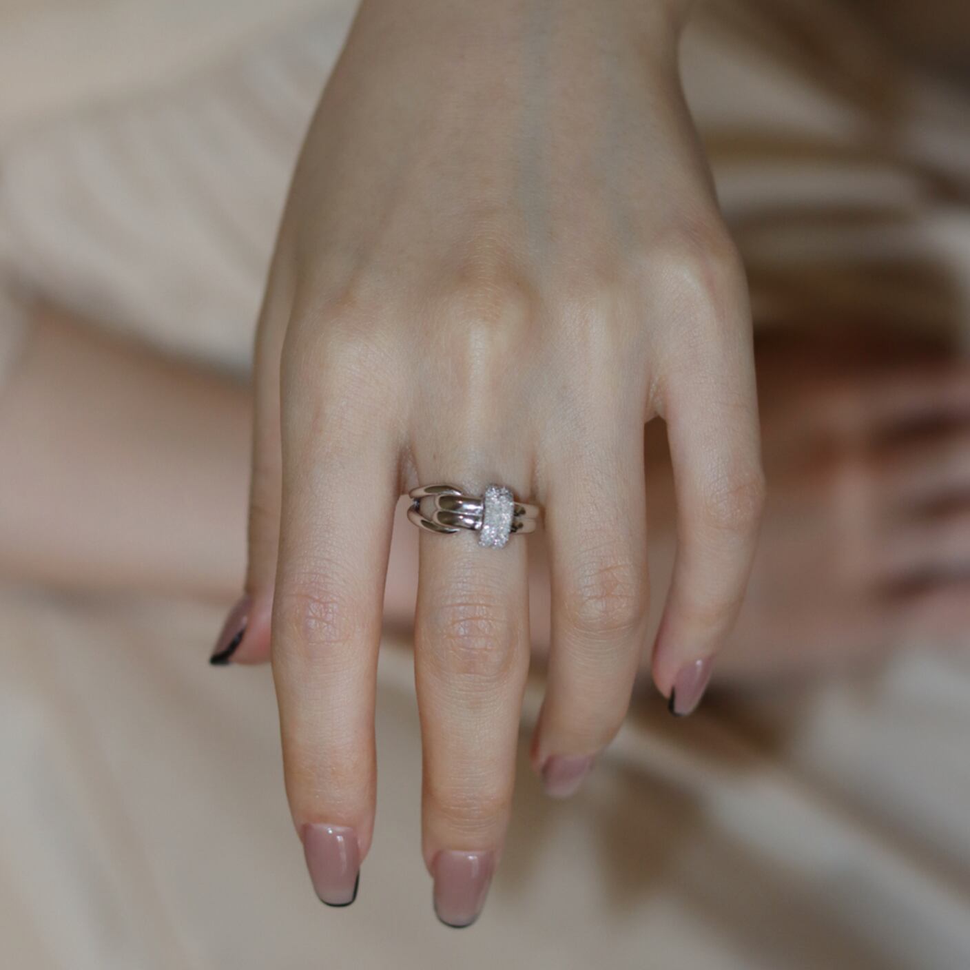 グリッター加工されたシルバーがさりげない華やかさを与えるリング。