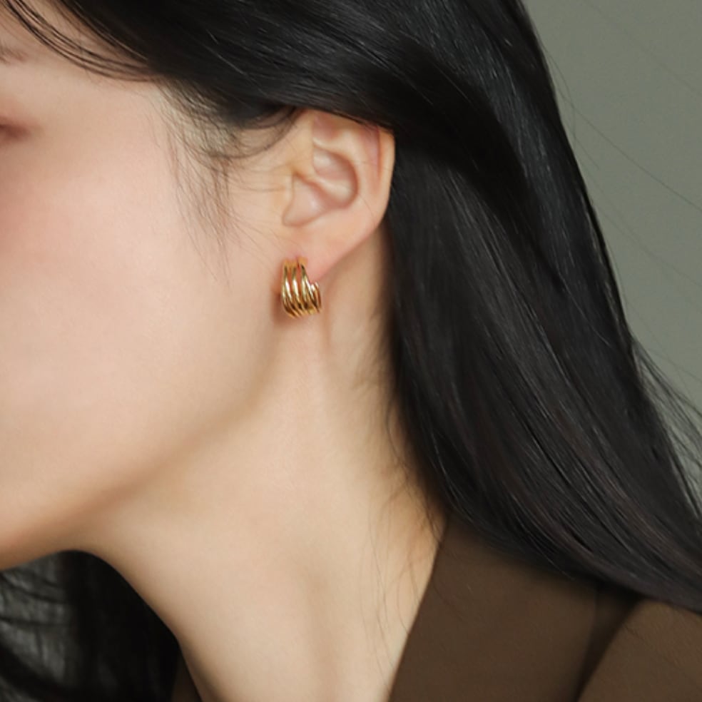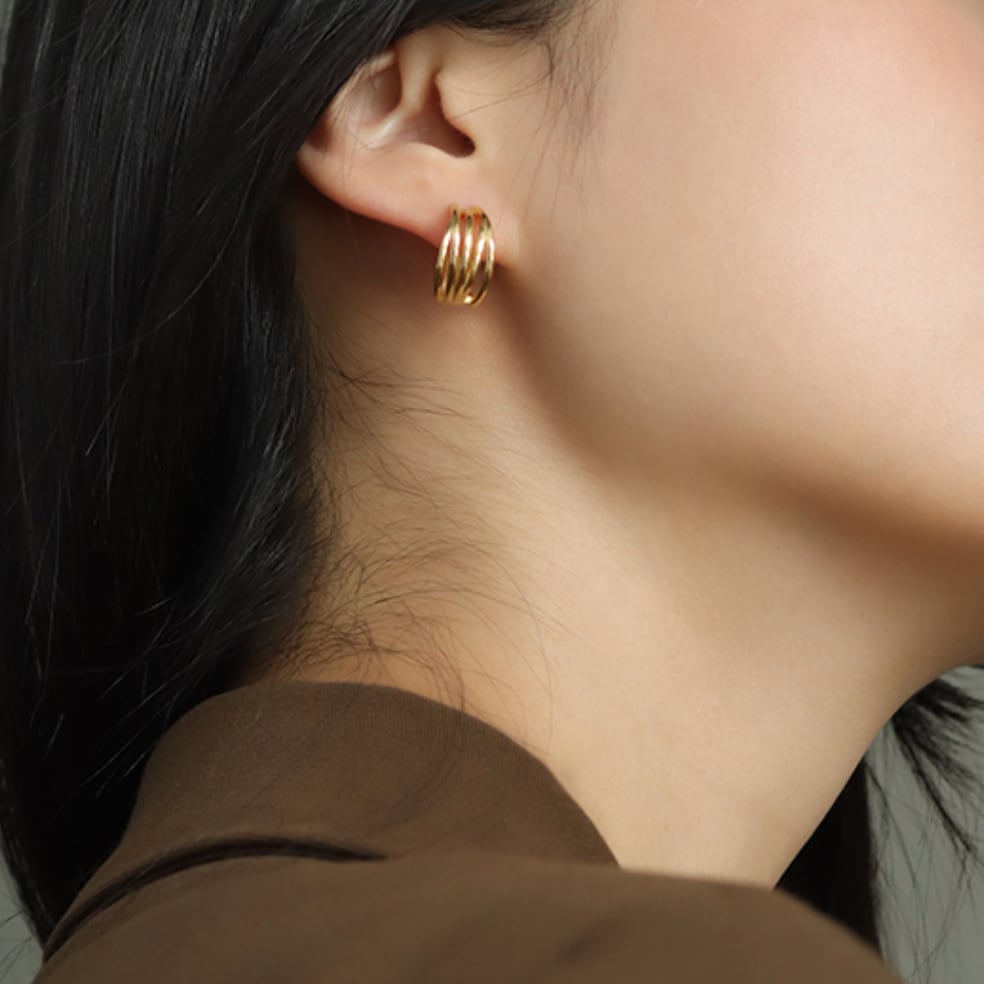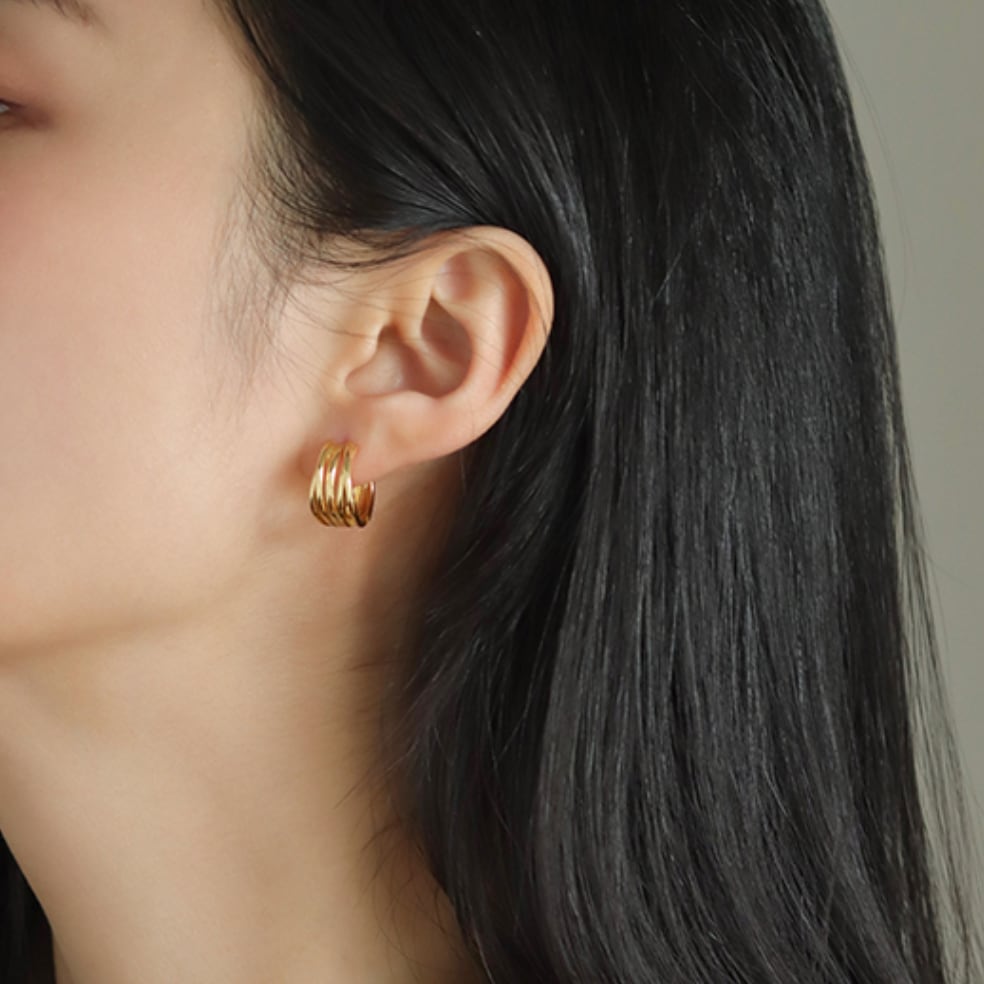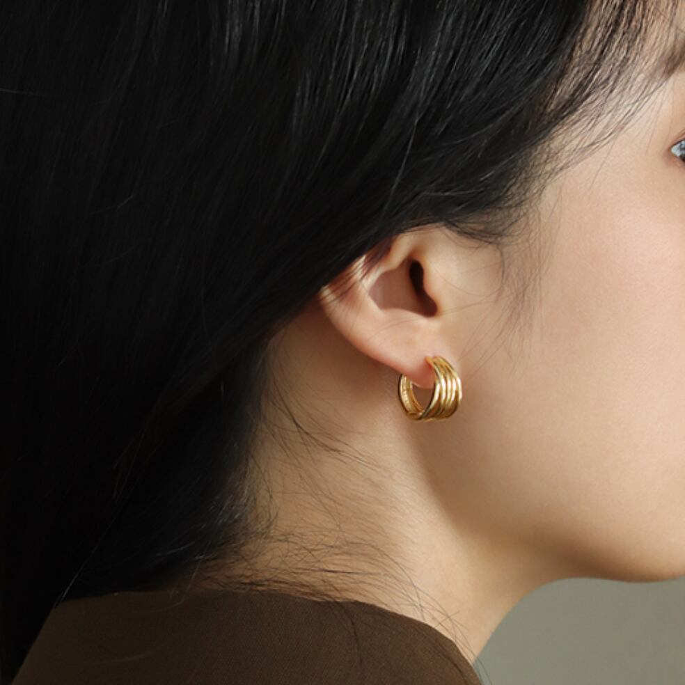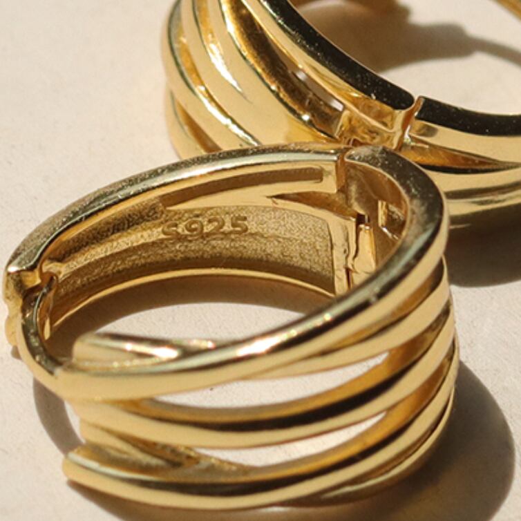5連リングデザインのデザインのシルバー925ピアス。