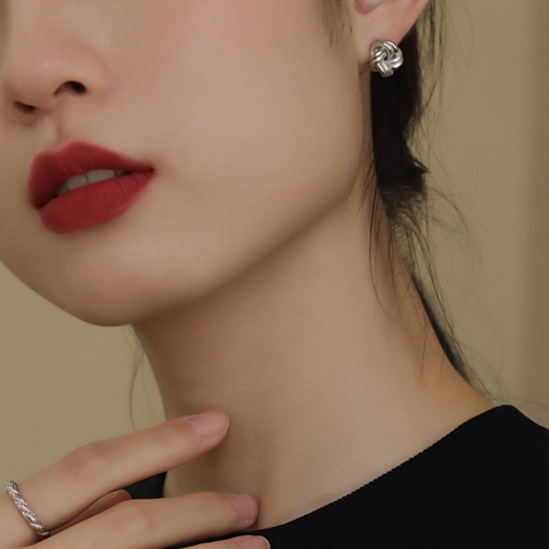 梅結びのようなデザインがかわいいピアス。
