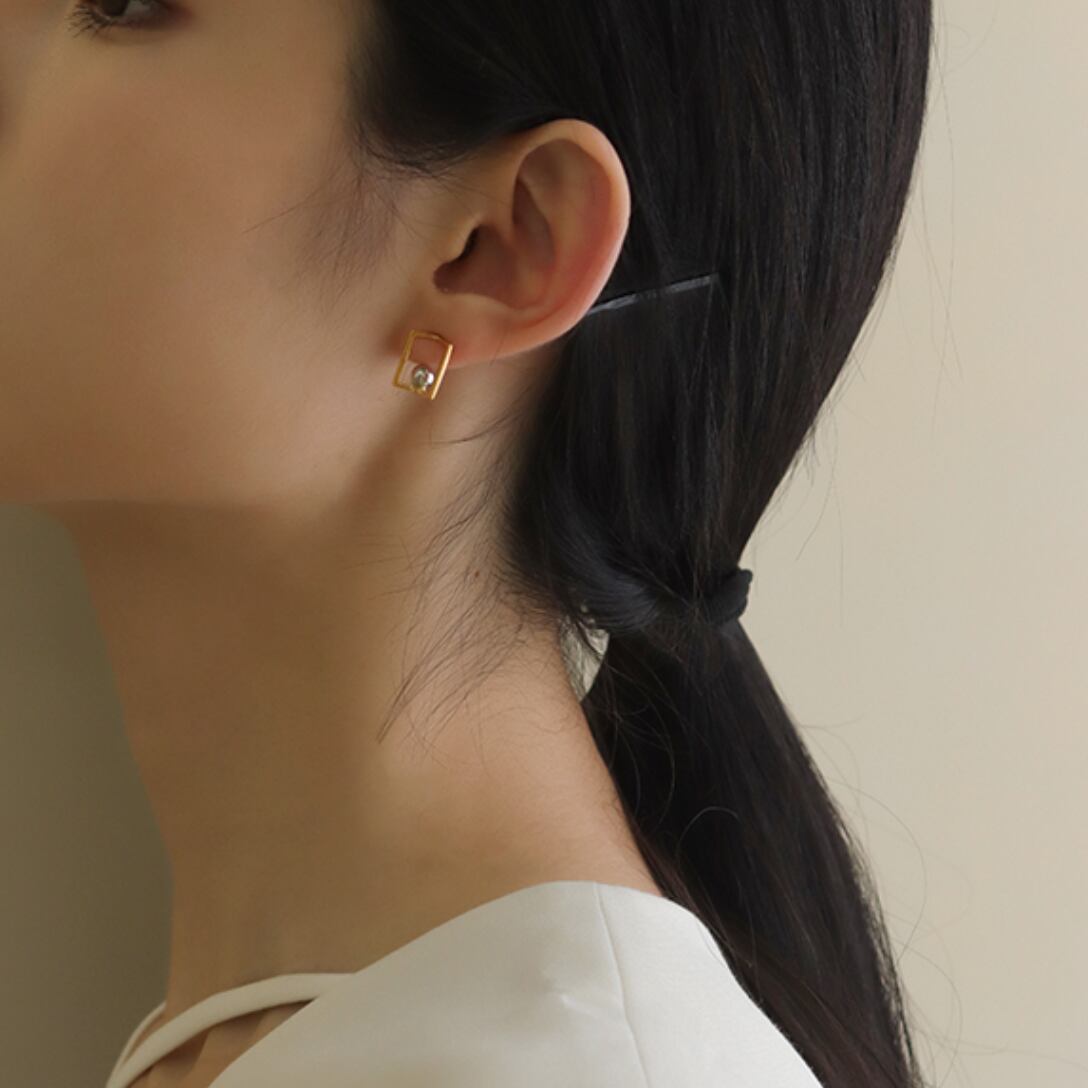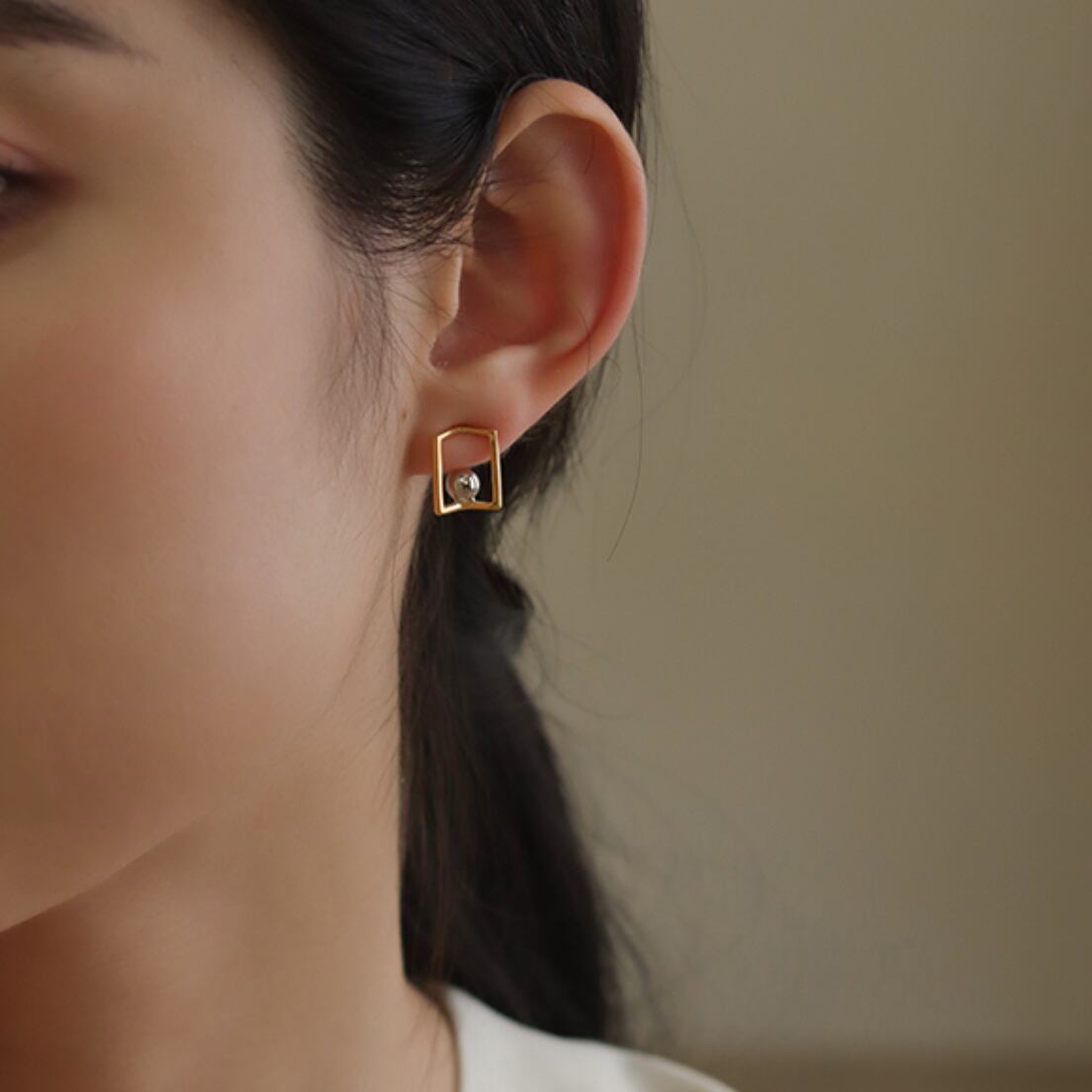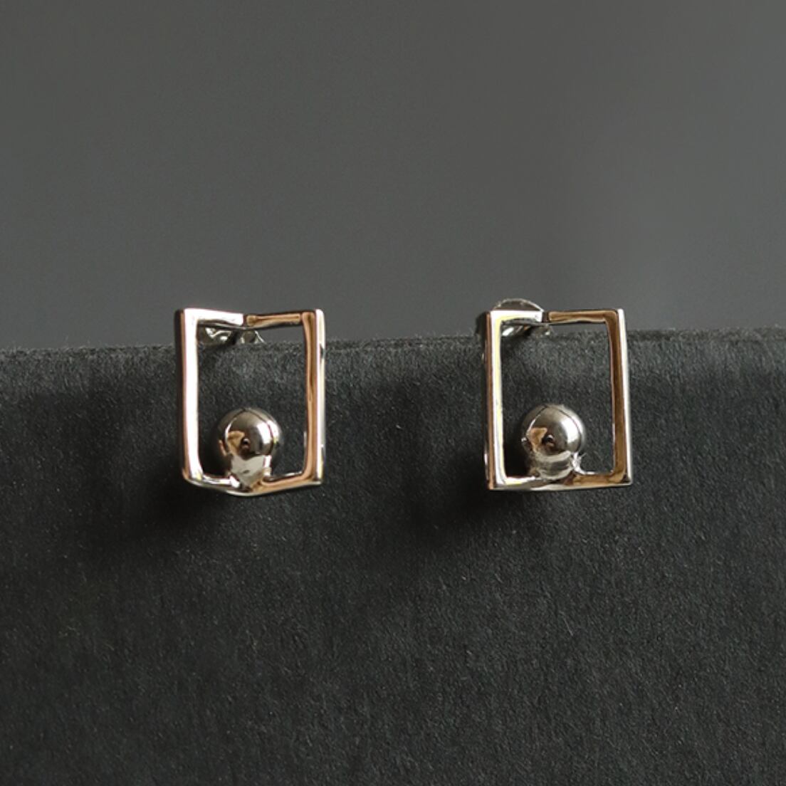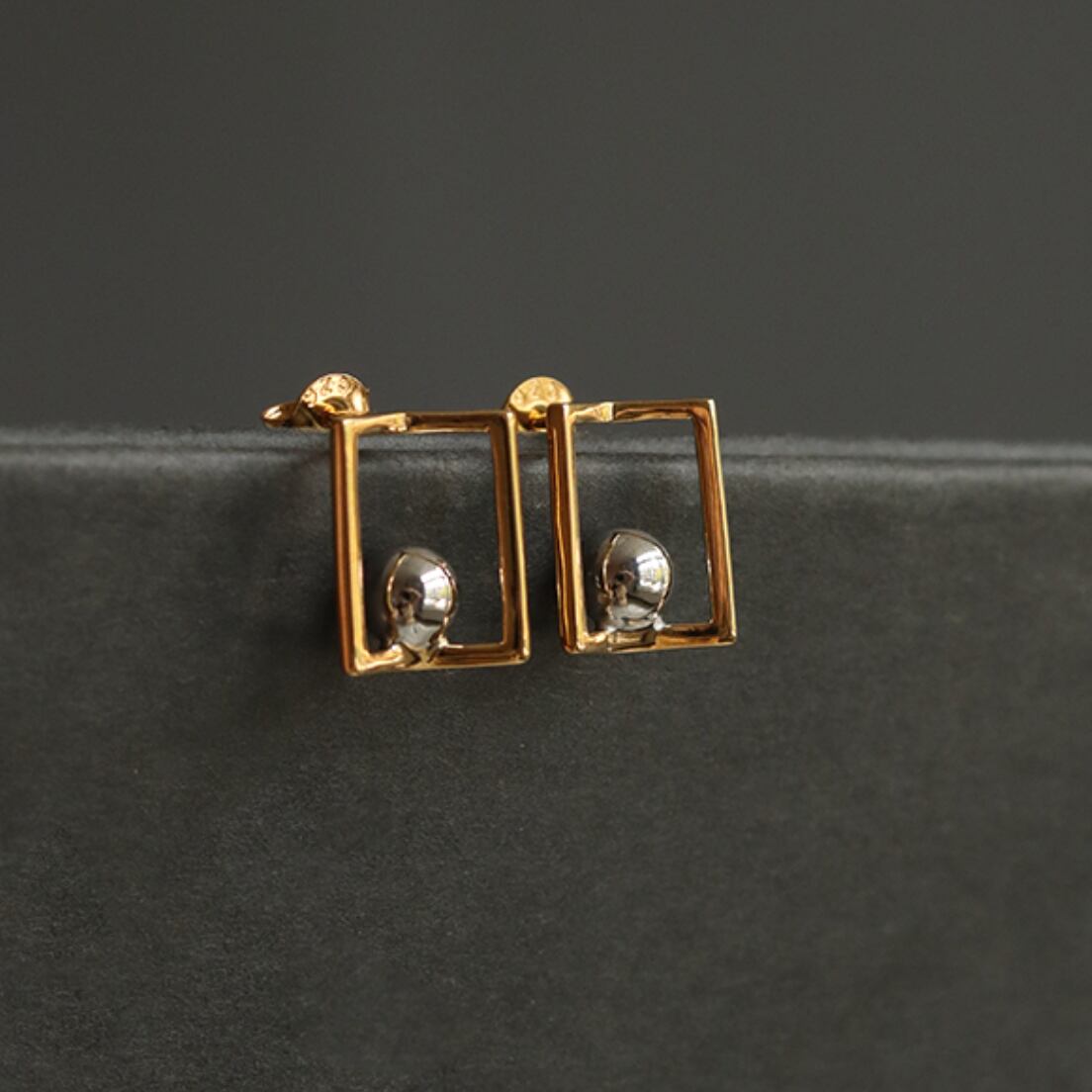 ゴールドのスクエアフレームに、シルバーのボールをはめ込んだ