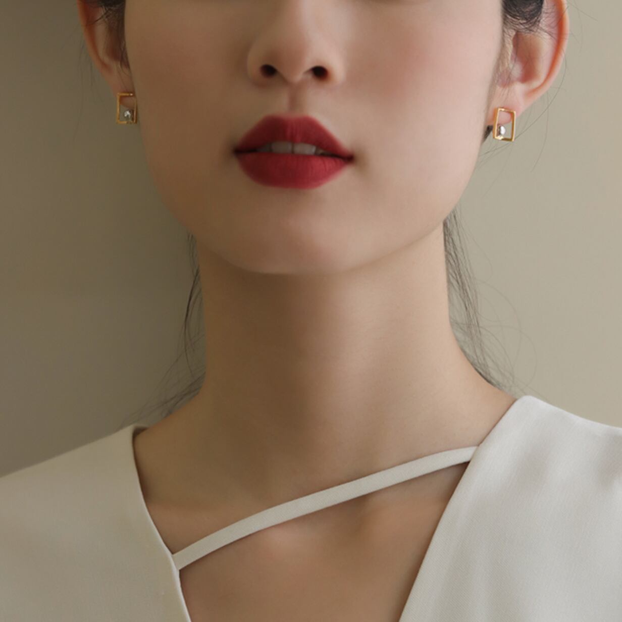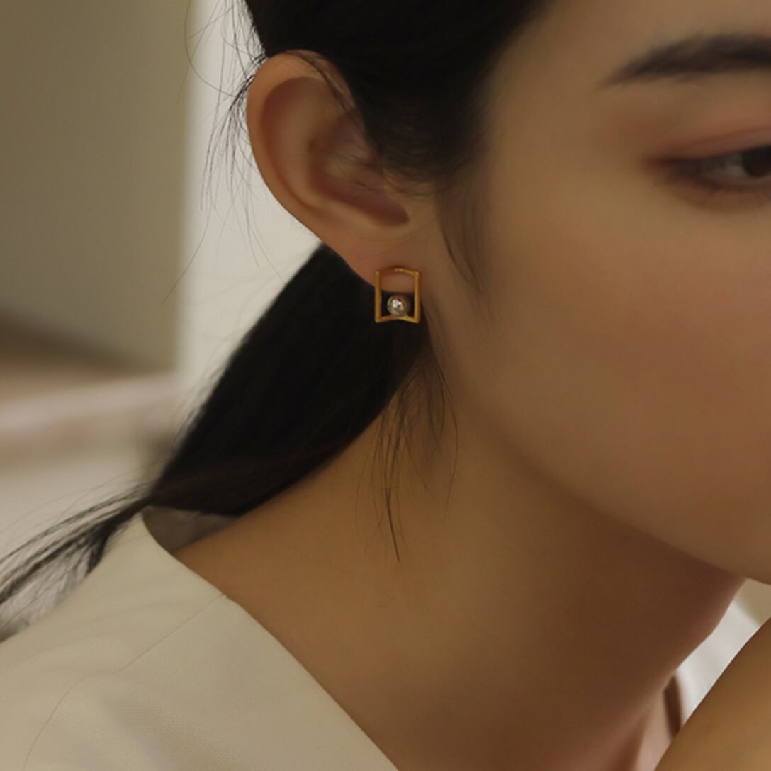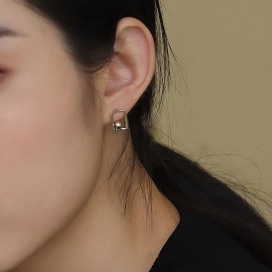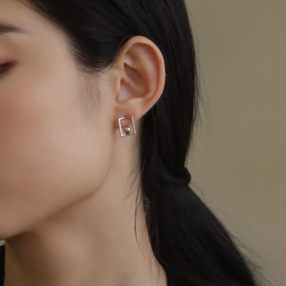 ゴールドのスクエアフレームに、シルバーのボールをはめ込んだ
