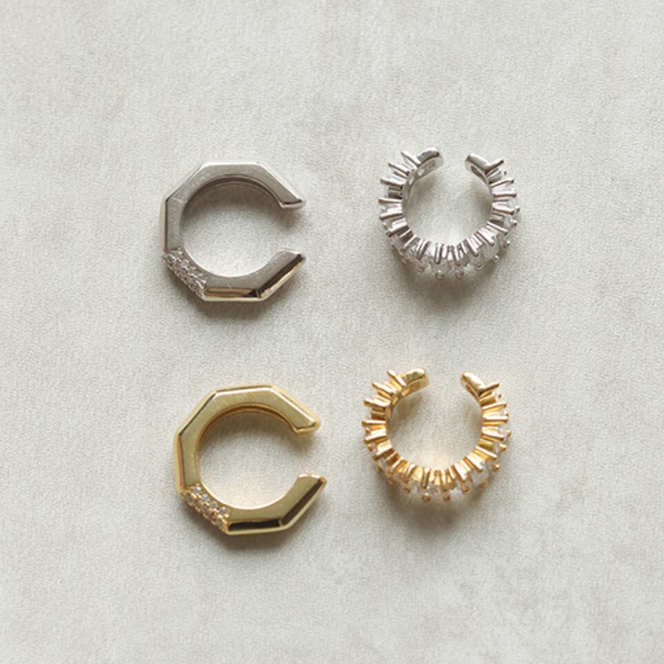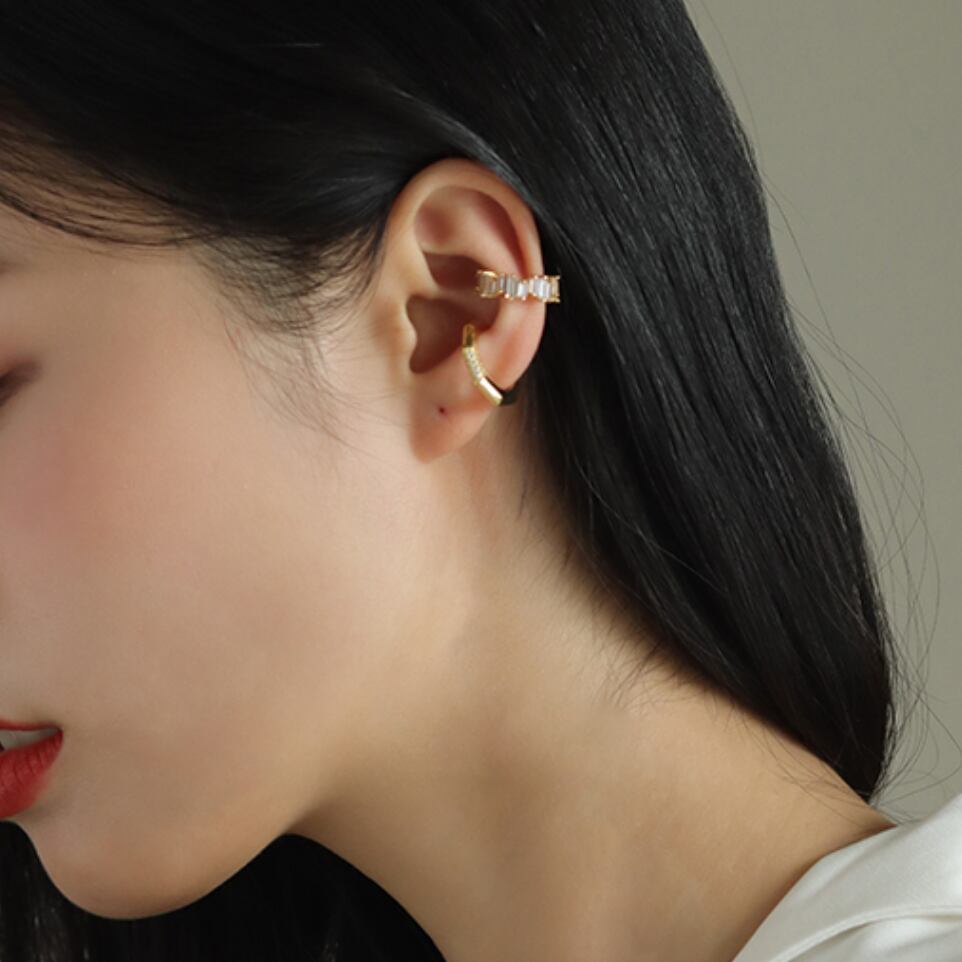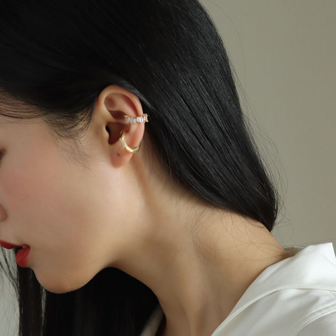 シンプルなイヤーカフやピアスと重ね付けすれば、