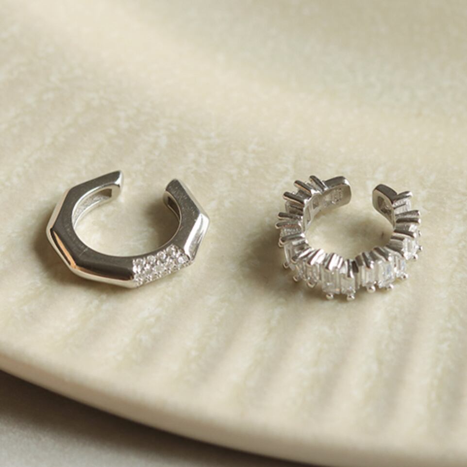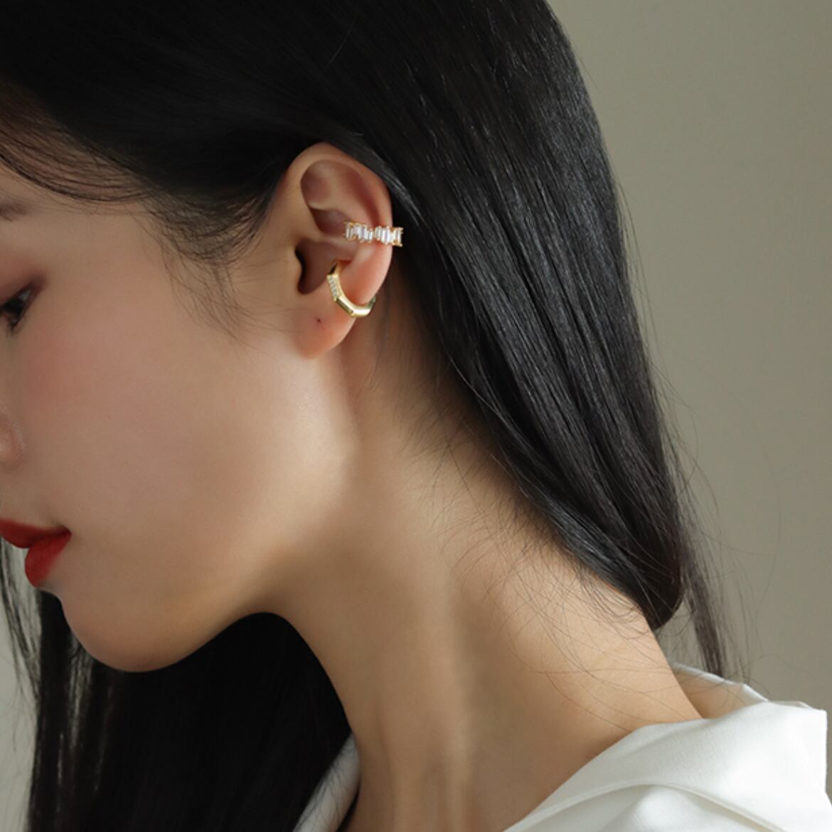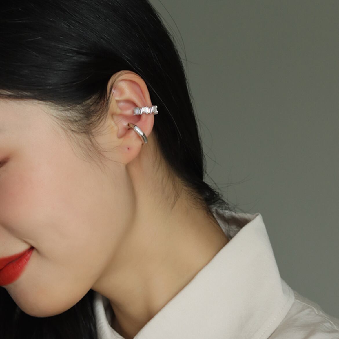 シンプルなイヤーカフやピアスと重ね付けすれば、